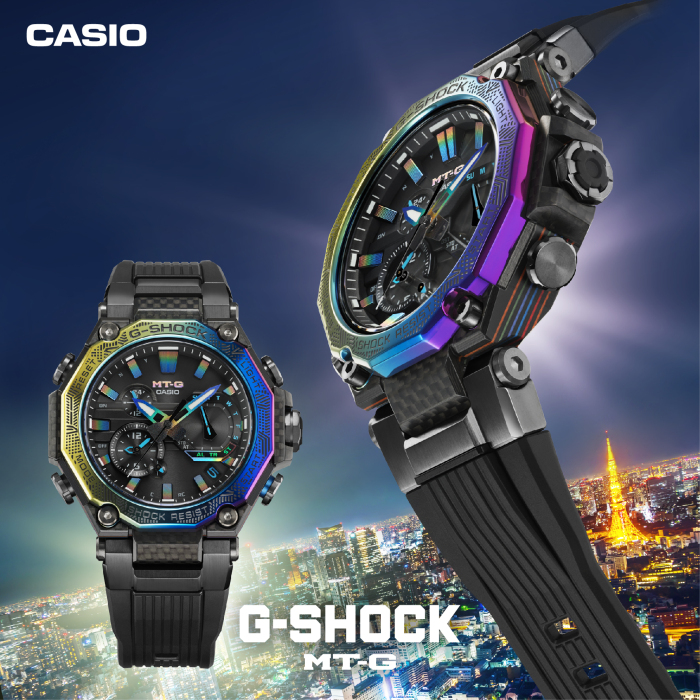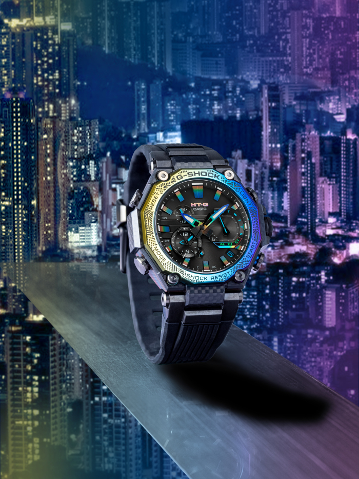 都市繁华的夜景,是此次新品「夜幕之都」的灵感所在。MTG-B2000YR-1A在MG-B2000系列的基础上,揽都市夜幕于腕上方寸之间,开启摩登生活与高级制表工艺的交锋。碳纤维与多彩玻璃纤维混搭层压,构成多层碳纤维框架,以璀璨光影于夜幕辉映,成就品味和质感。