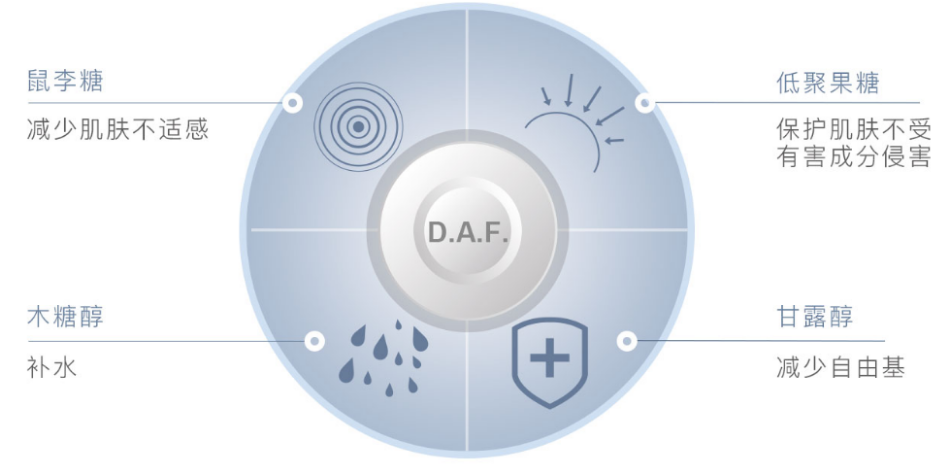 共同之处:D.A.F皮肤科学高级配方发明专利强效护肤