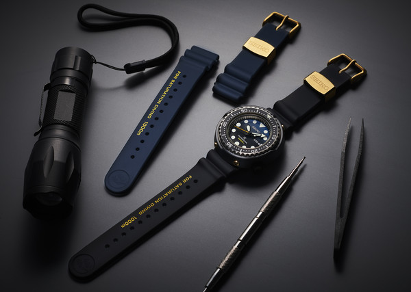 迈入夏季,各品牌潜水表尽出,Seiko Prospex近日推出1986石英潜水表35周年纪念限定表S23635J1,具1000米饱和潜水用的防水高规格,也采用Seiko独有的外胴保护圈构造,维持表款坚固耐用的强悍特性,正是大名鼎鼎的“鲔鱼罐头”;而面盘改采垂直渐层的蓝黑色调,搭配强化矽胶表带,另附一条深蓝色表带可供替换,所有的小细节都是以潜水员的安全为首要考量,包括表冠上的LOCK、箭头标示等都以亮黄色呈现。