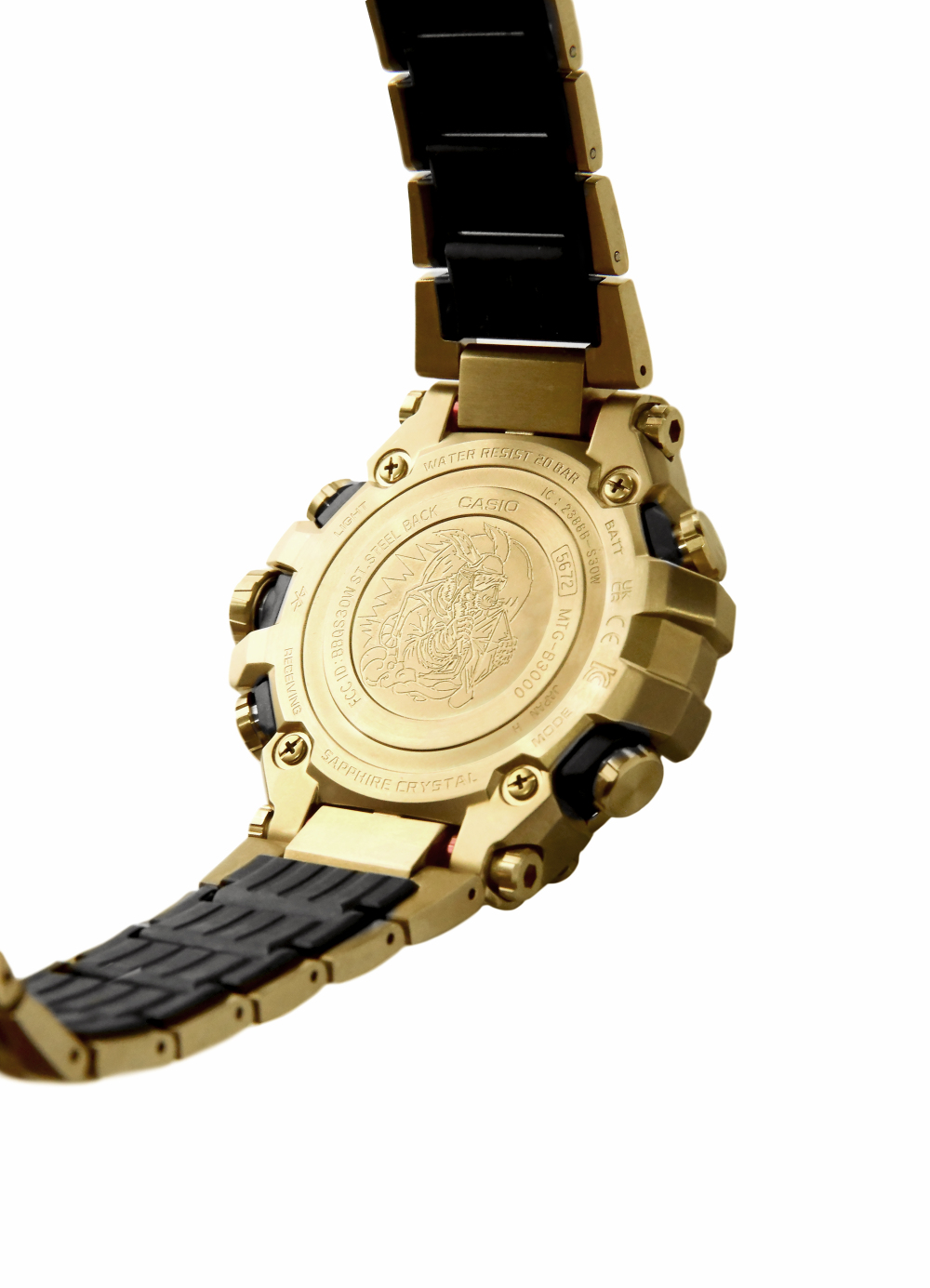 奢感金色在新年之际更添美好祈愿,将不凡融入日常。G-SHOCK MT-G兔年生肖款以金色IP涂层覆盖腕表表圈、表壳及表带,呈现不断精进的至臻工艺与坚韧精神,以高品质感为硬朗造型注入隽永格调。此外,腕表的两个小表盘还特别采用了红色,代表着月兔的红眼睛。在黑与金的映衬下,解锁灵动魅力。