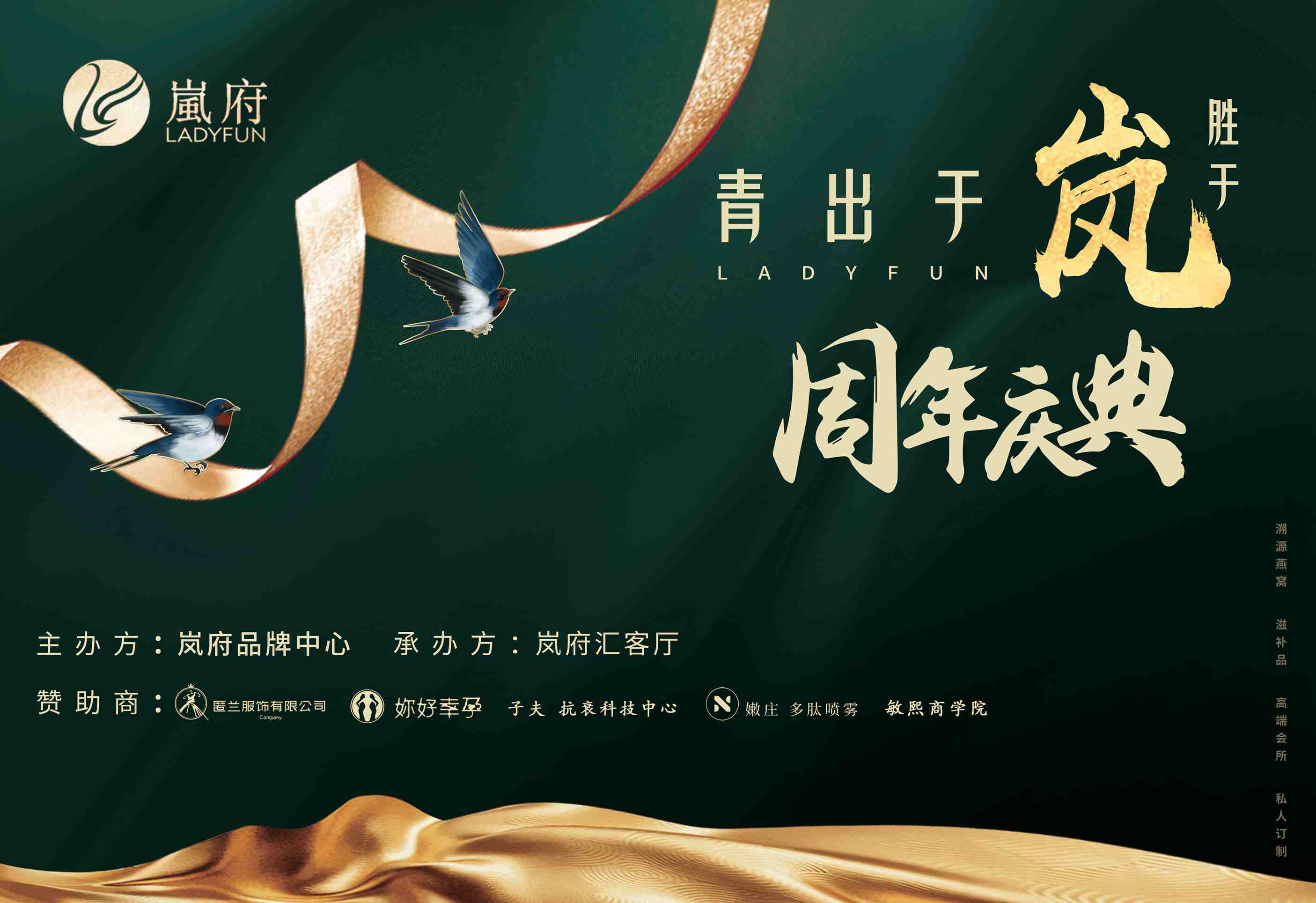 11月18日,由岚府品牌主办,子夫抗衰科技中心、匿兰服饰、妳好幸孕、敏熙商学院、嫩庄多肽喷雾赞助的岚府“青出于岚胜于岚”2020品牌周年庆典于岚府汇客厅圆满落幕。