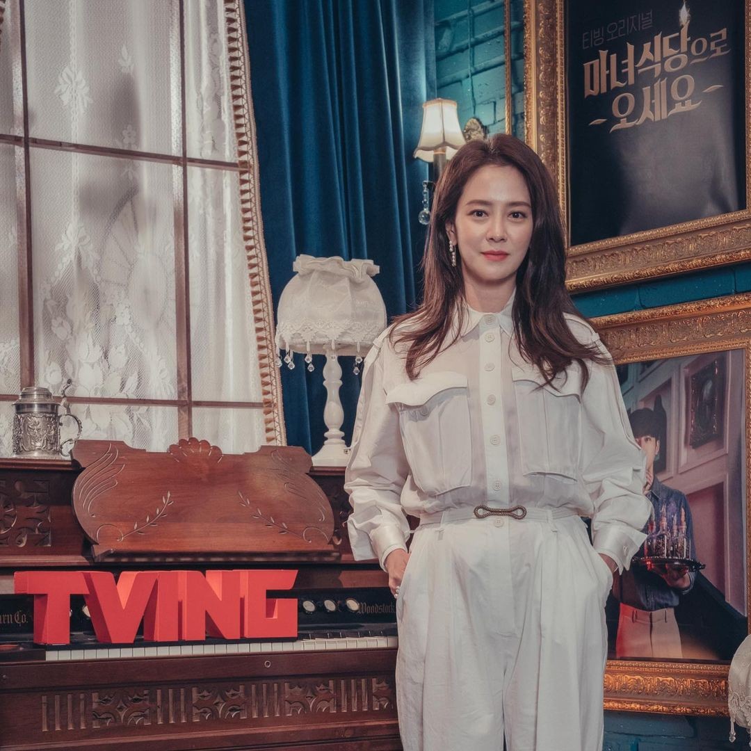▲宋智孝出席《来魔女食堂吧》线上记者会,佩戴TASAKI珍珠耳环与戒指。(图/翻摄tving.official IG)